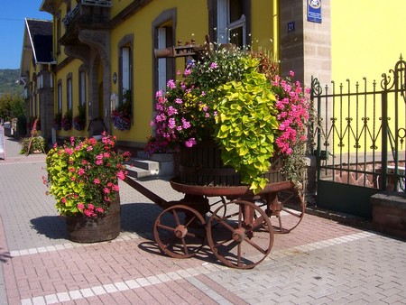 Des cascades de pétunias et de géraniums vous acompagnent tout le long de la route de Strasbourg